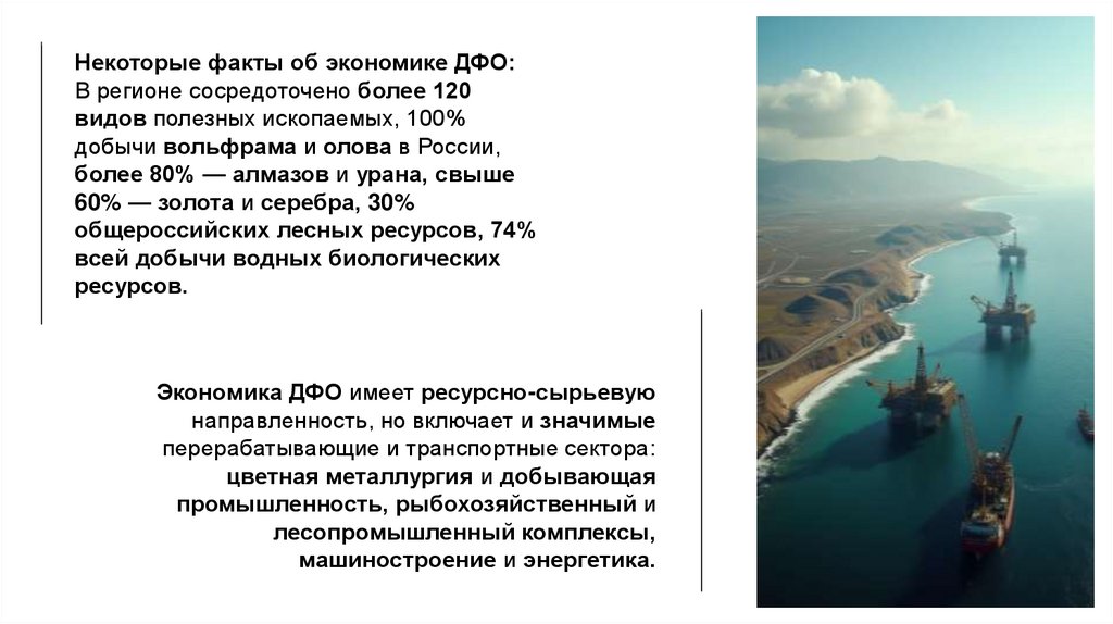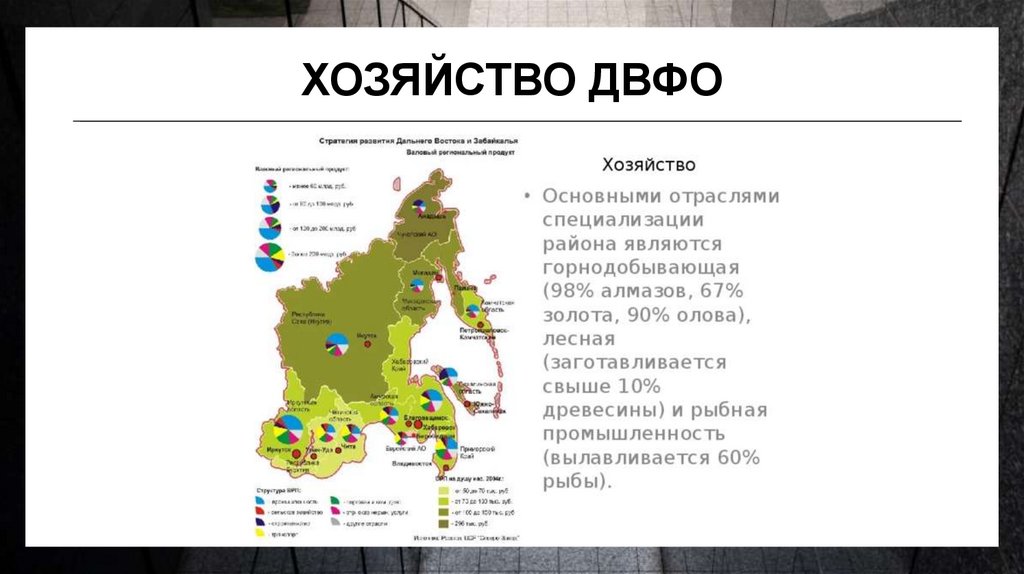 Некоторые факты об экономике ДФО:В регионе сосредоточено более 120