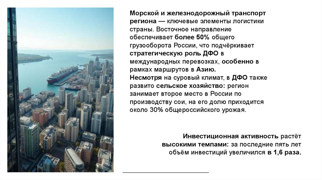 роль играет транспортная система, включающая морские порты (Владивосток,