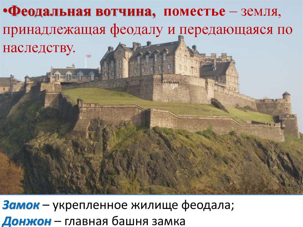 •Феодальная вотчина, поместье – земля,принадлежащая феодалу и передающаяся по