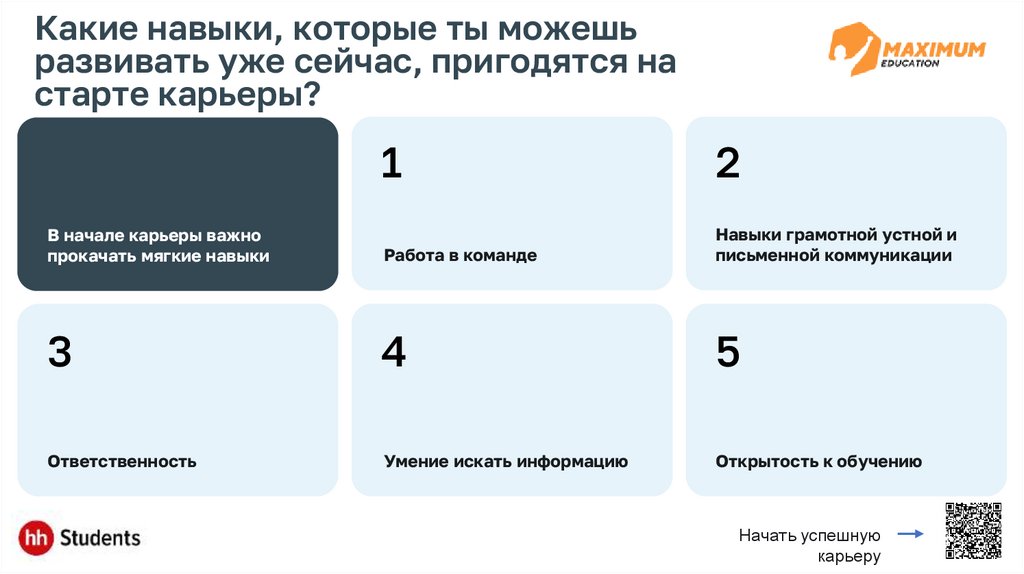 Какие навыки, которые ты можешьразвивать уже сейчас, пригодятся на