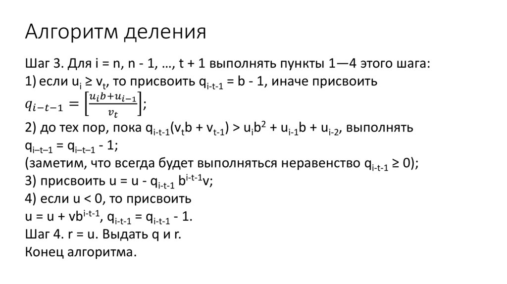 Шаг 2. Присвоить wj = uj + vj + k (mod b), wj — наименьший