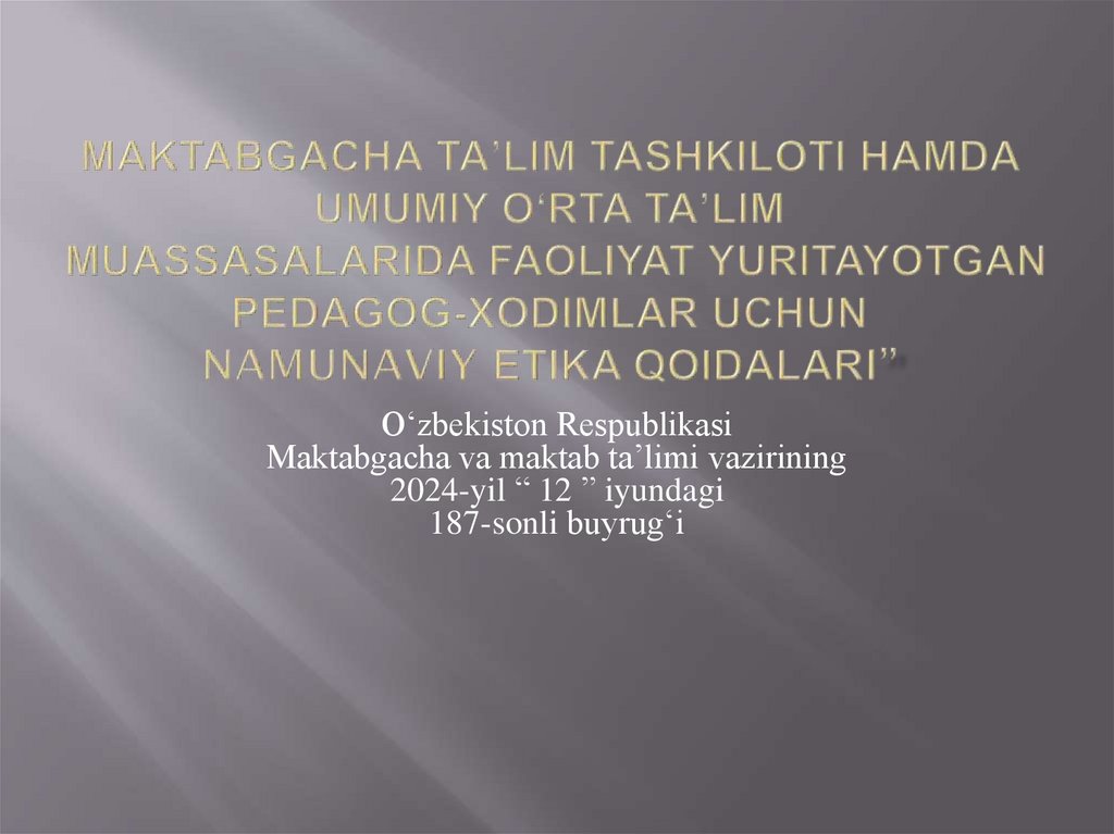 5. Umumiy o‘rta ta’lim muassasasining takomillashtirilgan namunaviy odob-axloq qoidalari