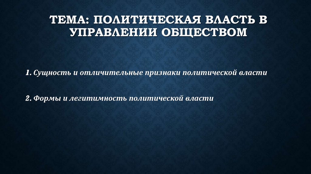 ТЕМА: ПОЛИТИЧЕСКАЯ ВЛАСТЬ ВУПРАВЛЕНИИ ОБЩЕСТВОМ