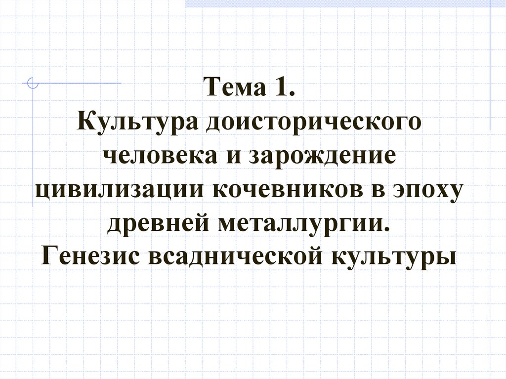 1. Тема 1. Культура доисторического человека и зарождение цивилизации кочевников в эпоху древней металлургии. Генезис всаднической