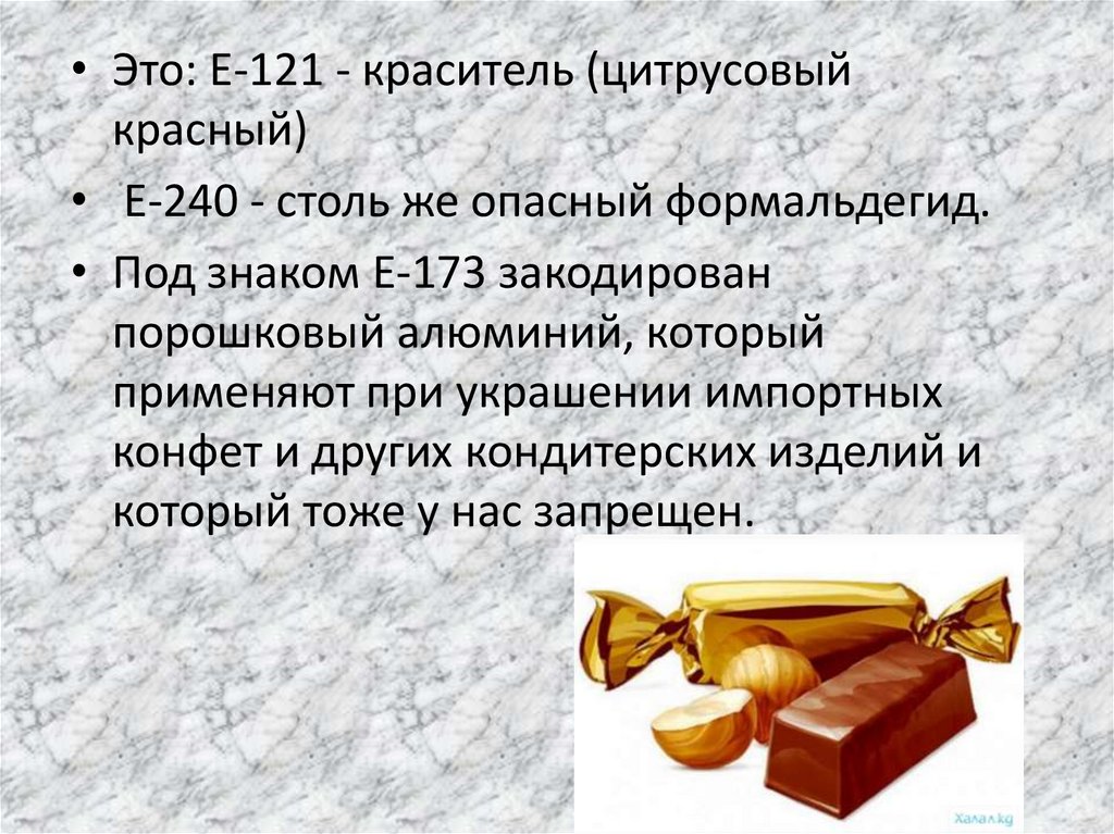 • Это: Е-121 - краситель (цитрусовыйкрасный)