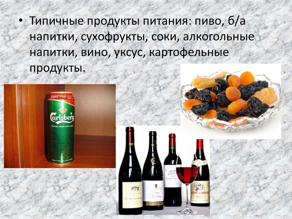 • Типичные продукты питания: пиво, б/анапитки, сухофрукты, соки, алкогольные
