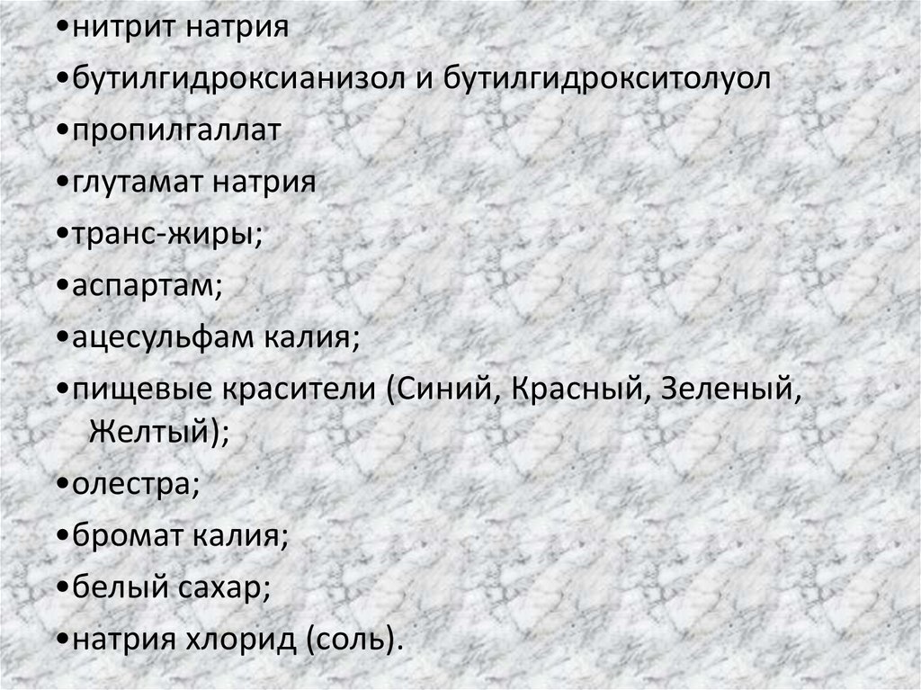 •нитрит натрия•бутилгидроксианизол и бутилгидрокситолуол