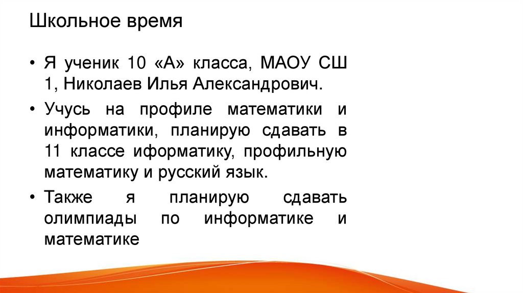Школьное время• Я ученик 10 «А» класса, МАОУ СШ