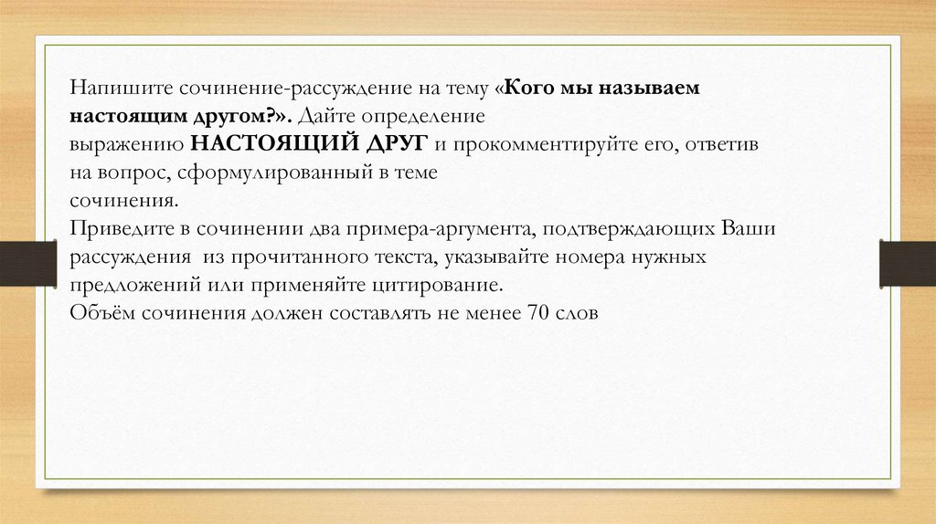 Напишите сочинение-рассуждение на тему «Кого мы называемнастоящим другом?». Дайте определение