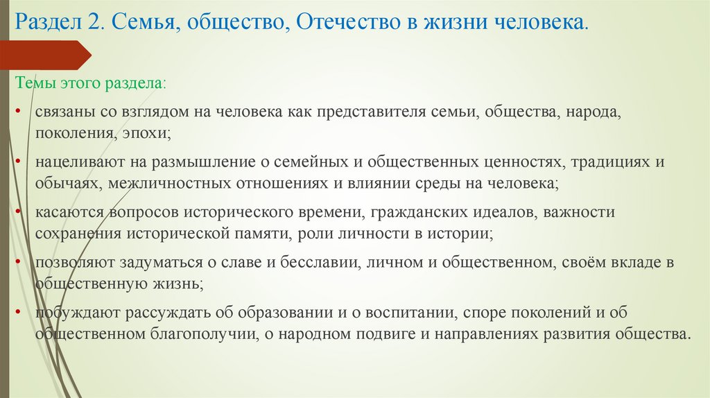 Раздел 2. Семья, общество, Отечество в жизни человека.Темы этого раздела: