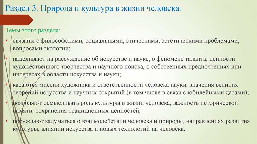 Раздел 3. Природа и культура в жизни человека.Темы этого раздела: