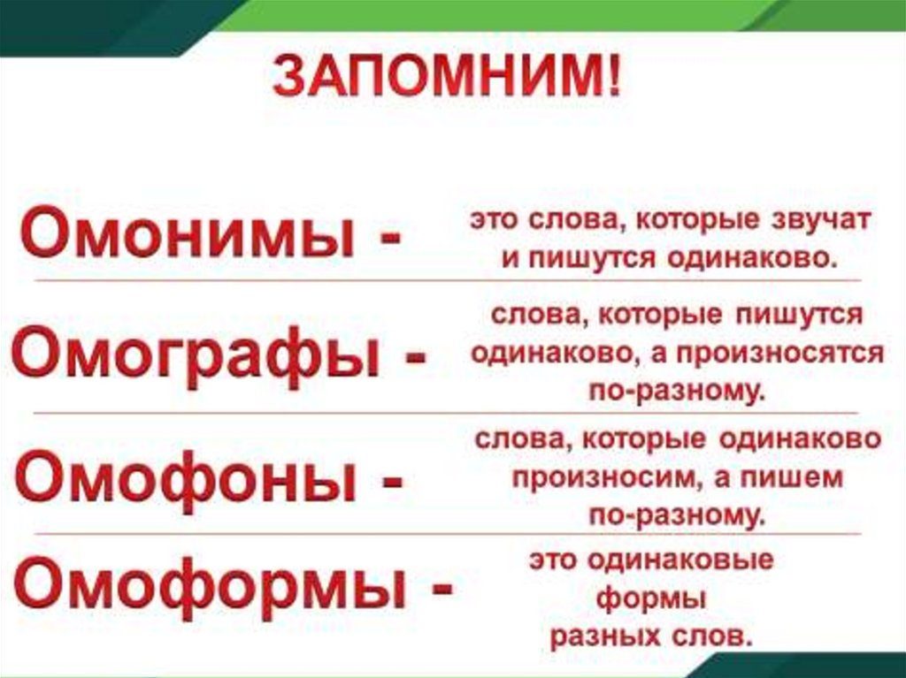Омонимы. Повторить правила