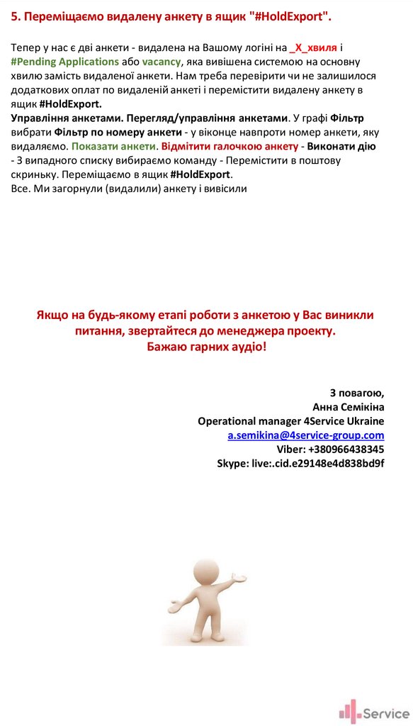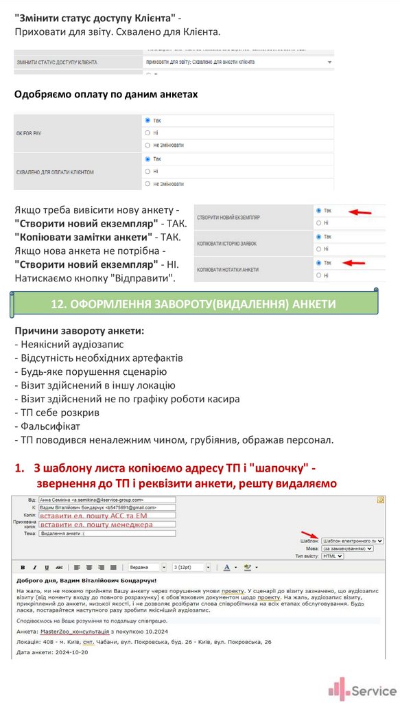 інструкцією, вимог і т.п.), яке ви відправляєте з анкети на ТП, АСС, ЕМ; в