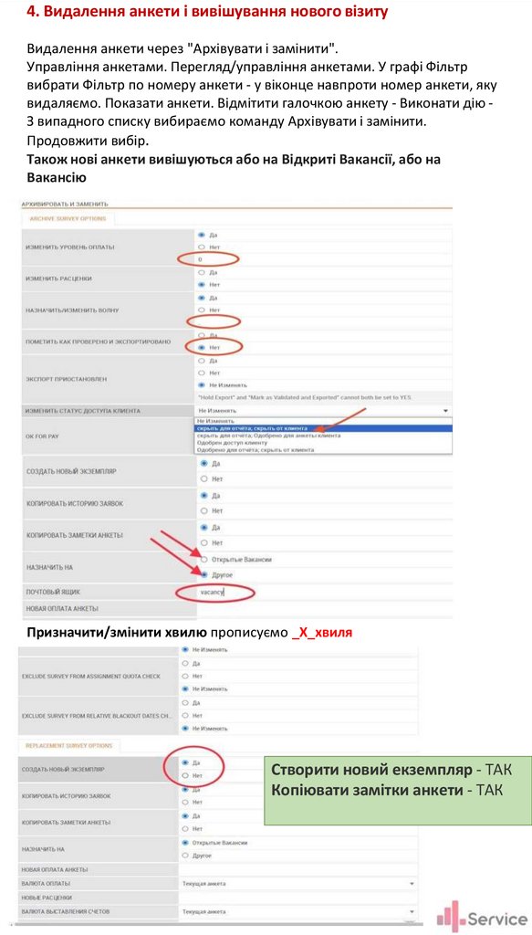 4. Видалення анкети і вивішування нового візитуВидалення анкети через "Архівувати і замінити".