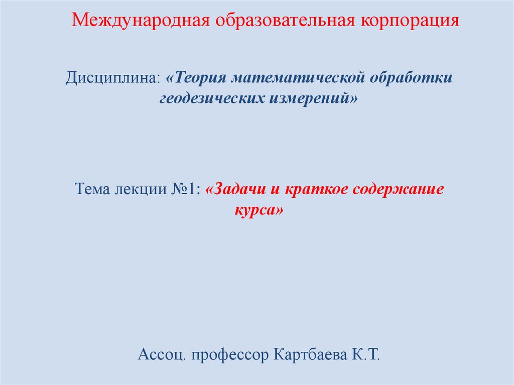 Дисциплина: «Теория математической обработкигеодезических измерений»