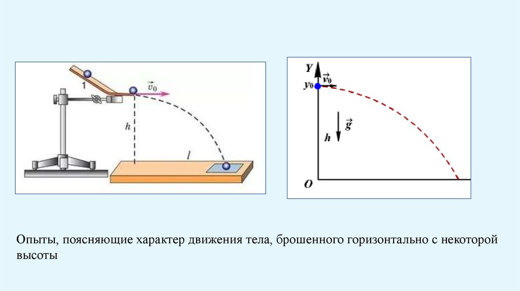 Опыты, поясняющие характер движения тела, брошенного горизонтально с некоторойвысоты