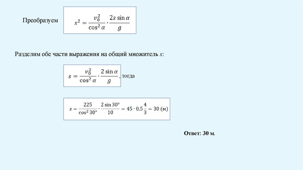 ПреобразуемРазделим обе части выражения на общий множитель s: