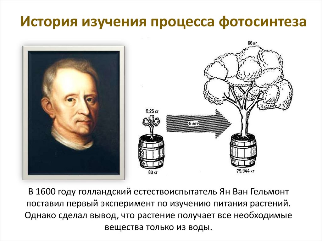 История изучения процесса фотосинтезаВ 1600 году голландский естествоиспытатель Ян Ван Гельмонт