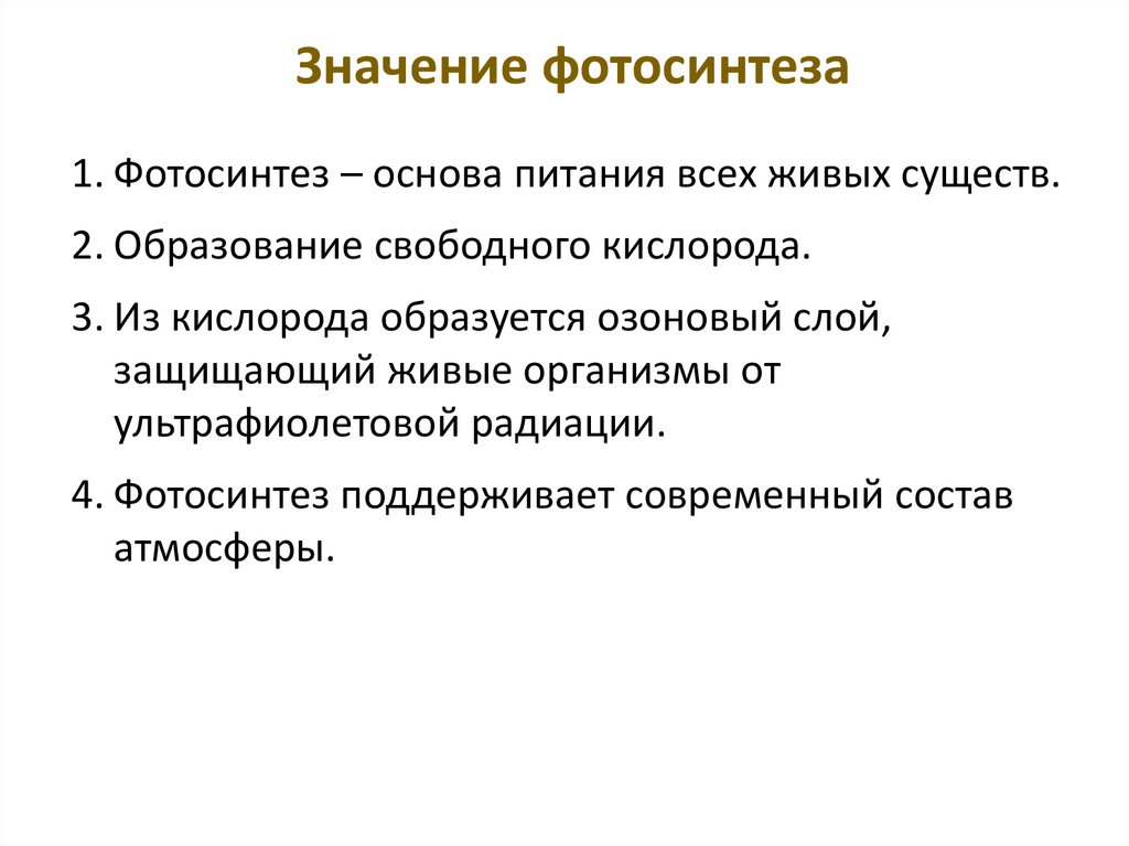 Значение фотосинтеза1. Фотосинтез – основа питания всех живых существ.