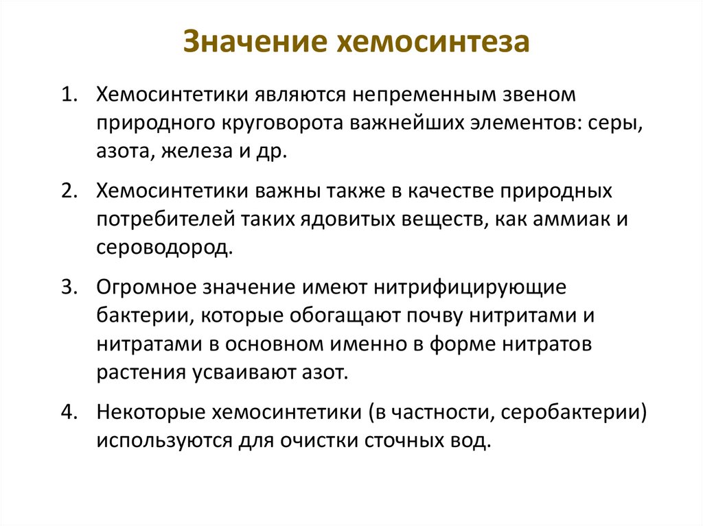 Значение хемосинтеза1. Хемосинтетики являются непременным звеном