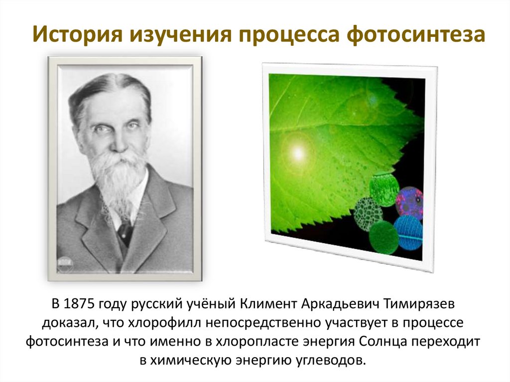 История изучения процесса фотосинтезаВ 1875 году русский учёный Климент Аркадьевич Тимирязев