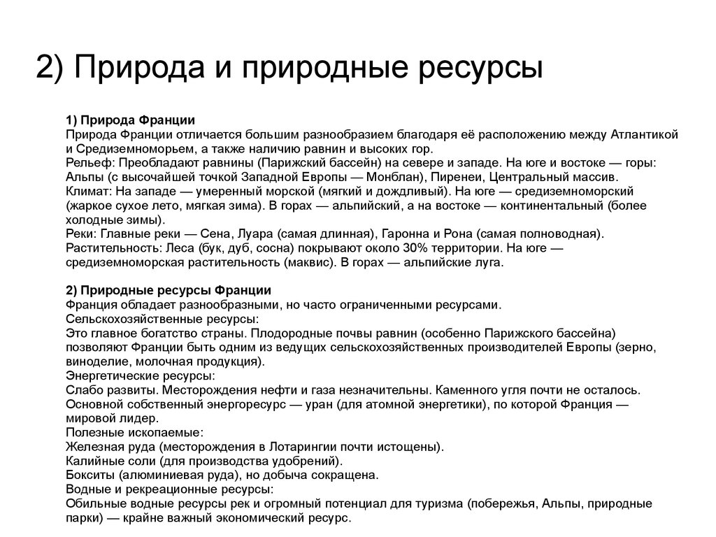 2) Природа и природные ресурсы1) Природа Франции