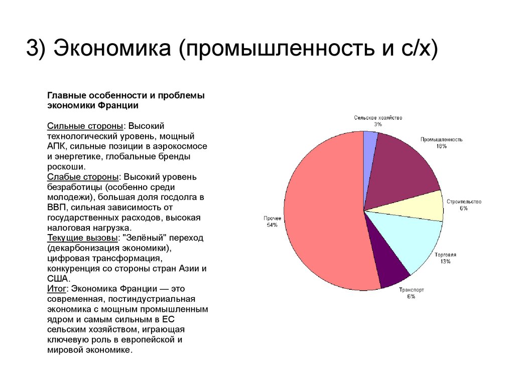 3) Экономика (промышленность и с/х)Главные особенности и проблемы