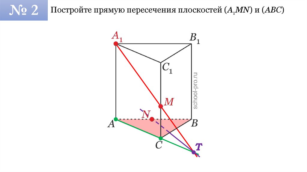 №2Постройте прямую пересечения плоскостей (A1MN) и (ABC)