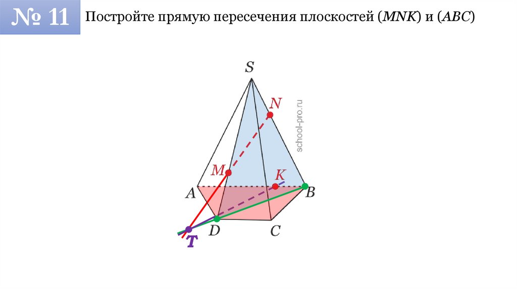 № 11 Постройте прямую пересечения плоскостей (MNK) и (ABC)T