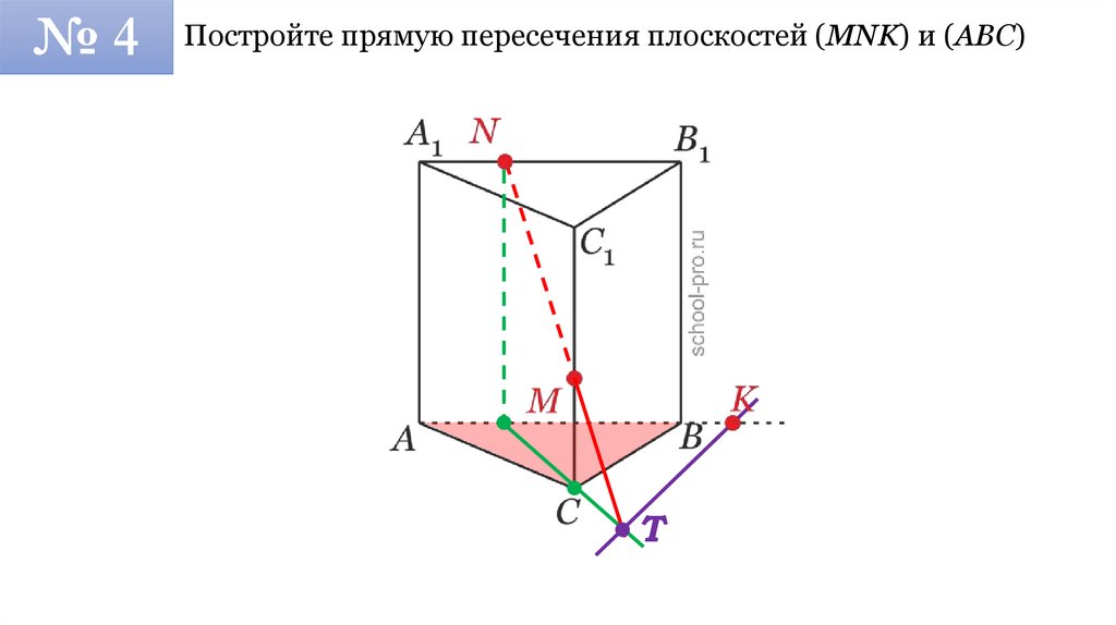 №4Постройте прямую пересечения плоскостей (MNK) и (ABC)