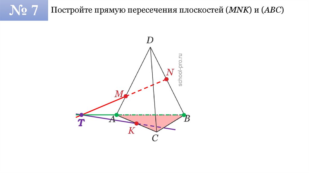 №7Постройте прямую пересечения плоскостей (MNK) и (ABC)