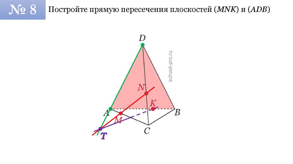 №8Постройте прямую пересечения плоскостей (MNK) и (ADB)