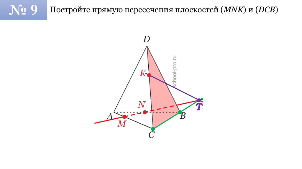 №9Постройте прямую пересечения плоскостей (MNK) и (DCB)