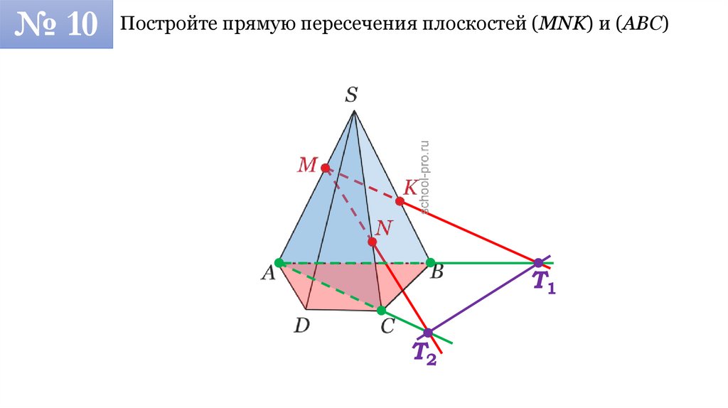 № 10 Постройте прямую пересечения плоскостей (MNK) и (ABC)T1