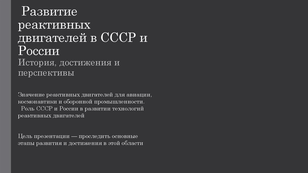 Основные моменты:1930-е годы: Начало разработки реактивных технологий в Советском Союзе. Первые