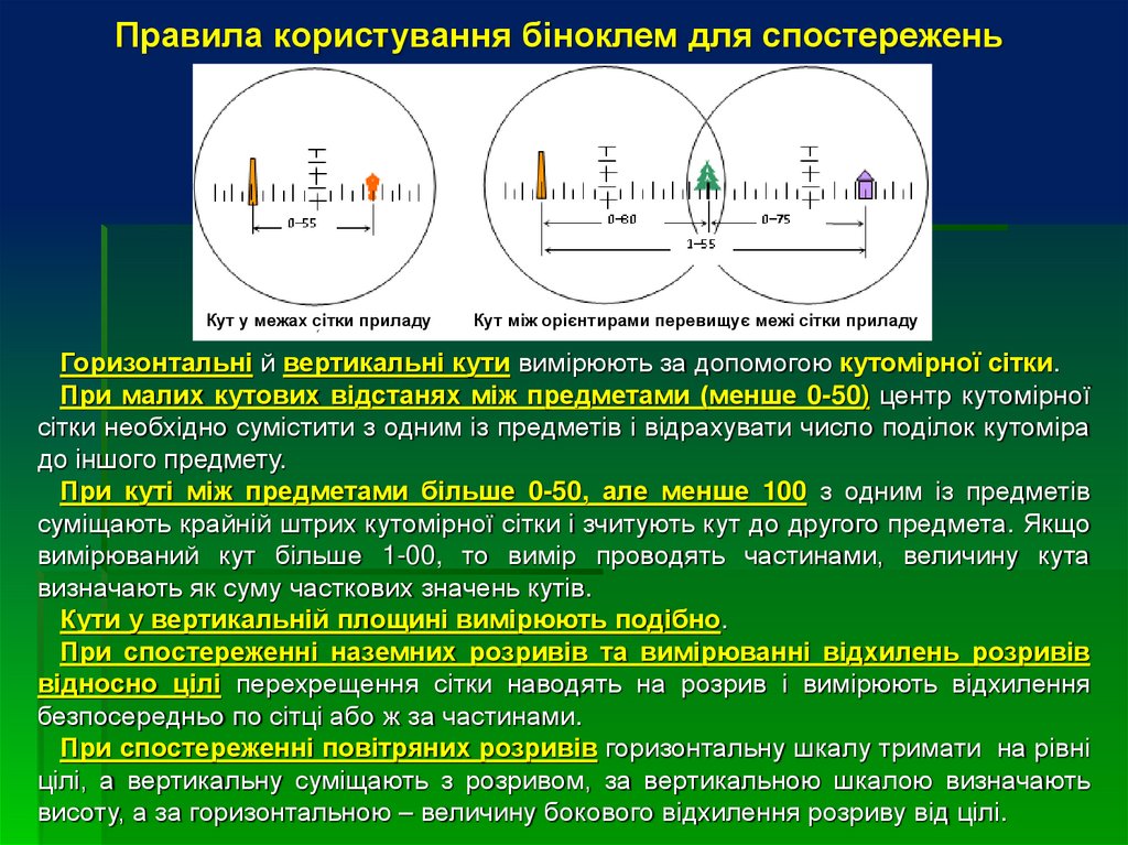 не градусами, а поділками кутоміра – тисячними.