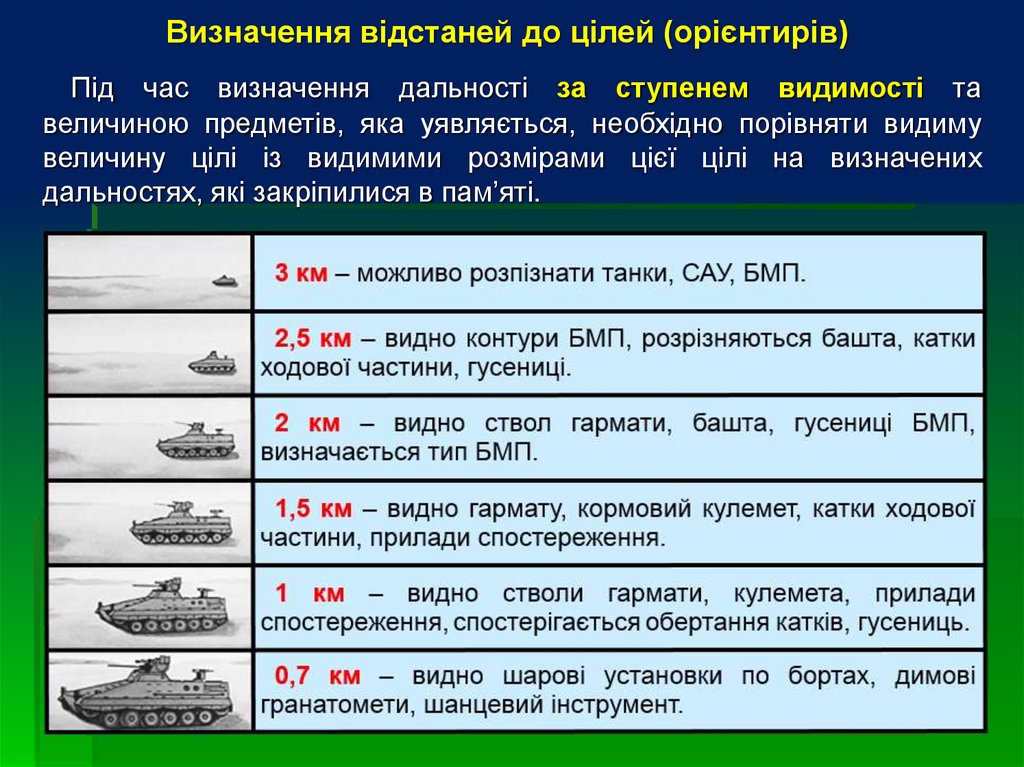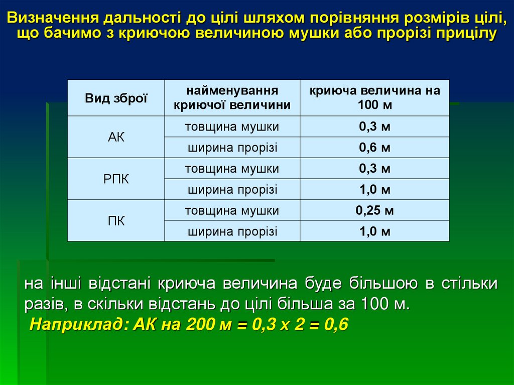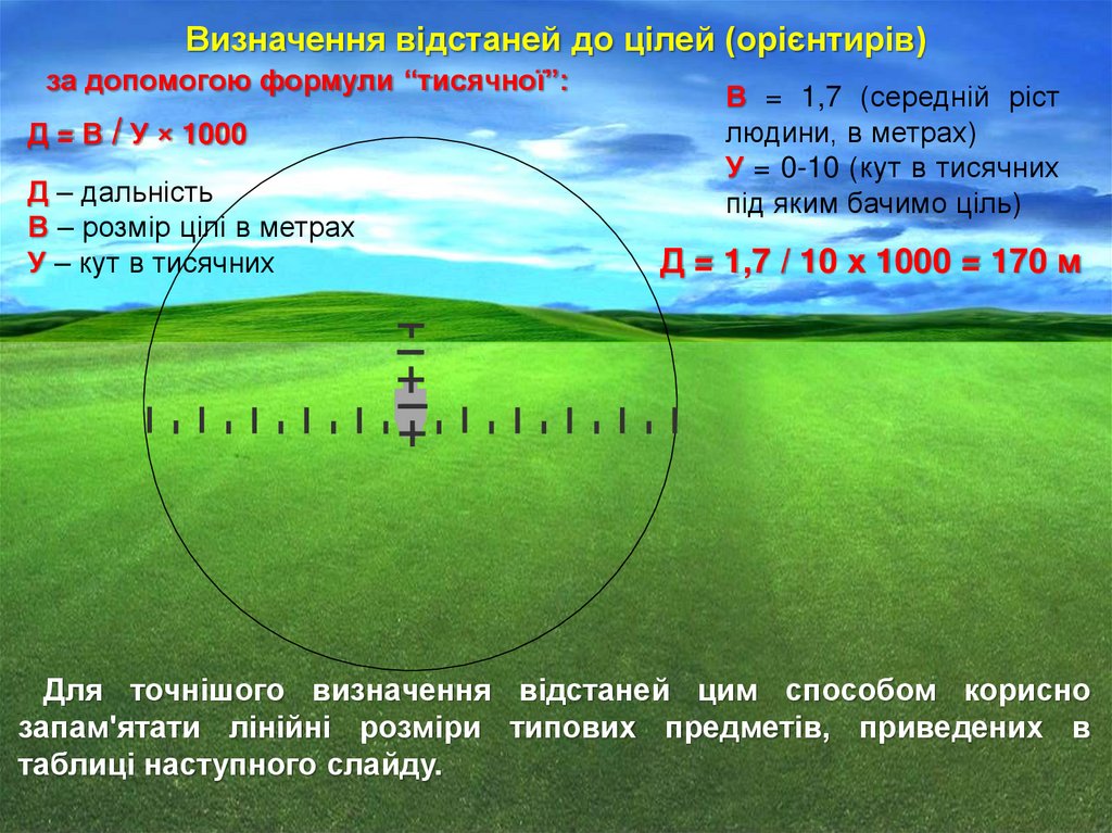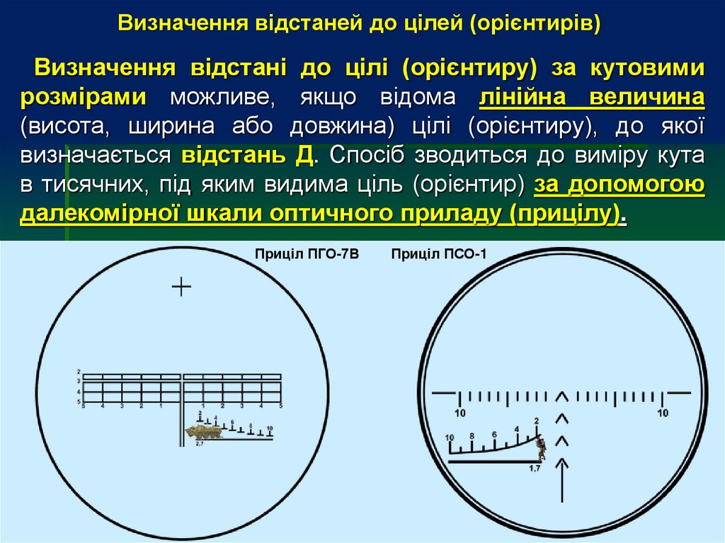 прицілювання, необхідно визначити відстань до