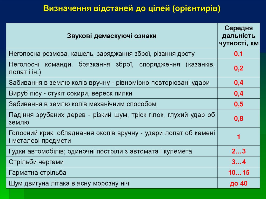 На місцевості відстані до цілі, залежно від