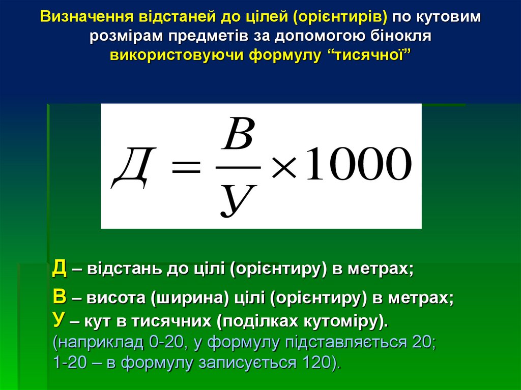 одній тисячній дальності, помноженій на кут У – в тисячних