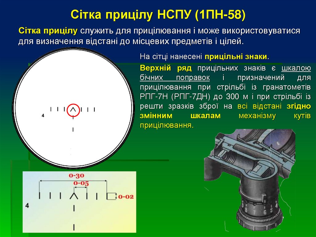 Сітка прицілу НСПУ (1ПН-58)Сітка прицілу служить для прицілювання і може використовуватися