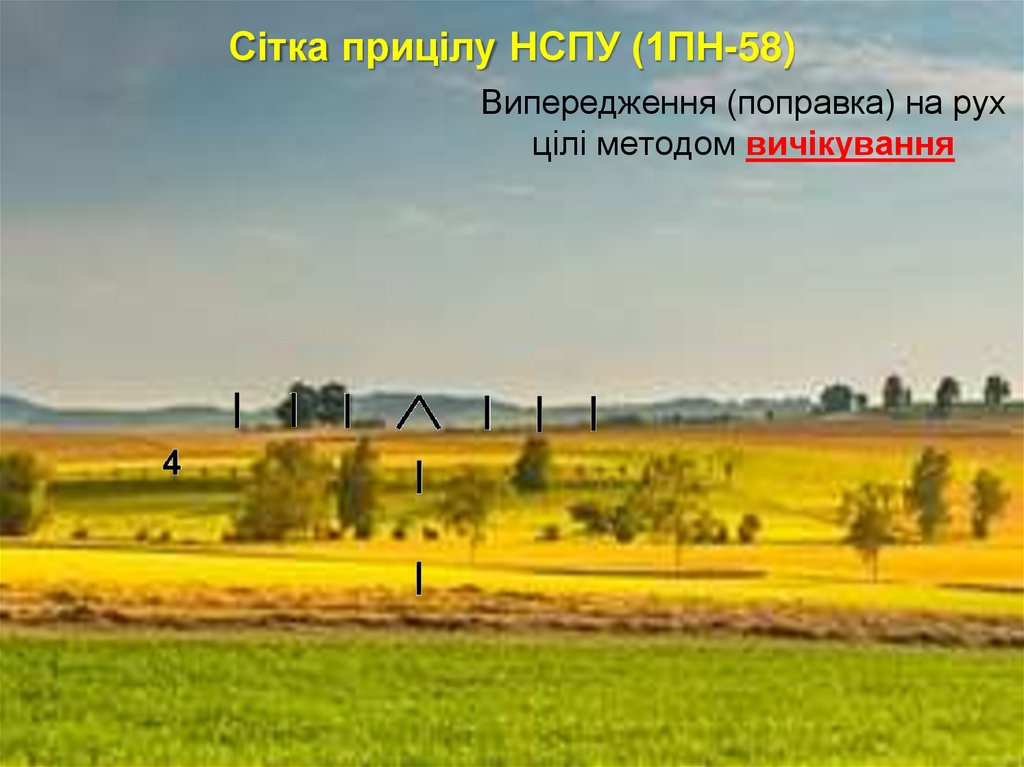 Сітка прицілу НСПУ (1ПН-58)Випередження (поправка) на рух