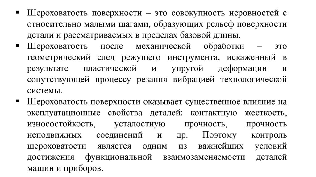 шероховатости является одним из важнейших условий