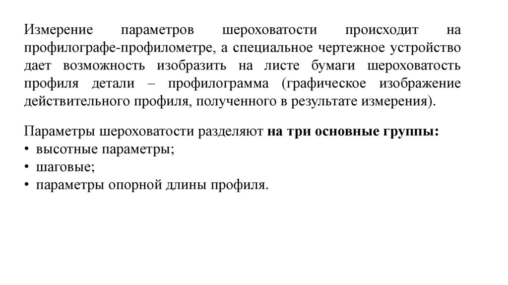 Параметры шероховатости разделяют на три основные группы:
