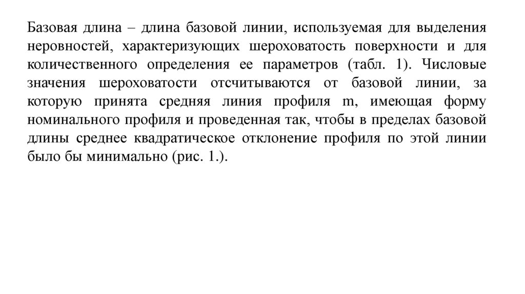 Базовая длина – длина базовой линии, используемая для выделениянеровностей, характеризующих шероховатость поверхности и для