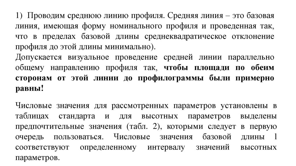 1) Проводим среднюю линию профиля. Средняя линия – это базоваялиния, имеющая форму номинального профиля и проведенная так,