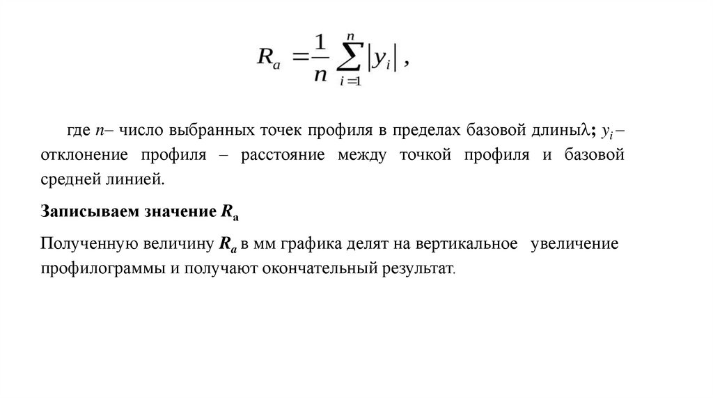 где n– число выбранных точек профиля в пределах базовой длины ; yi –отклонение профиля – расстояние между точкой профиля и базовой