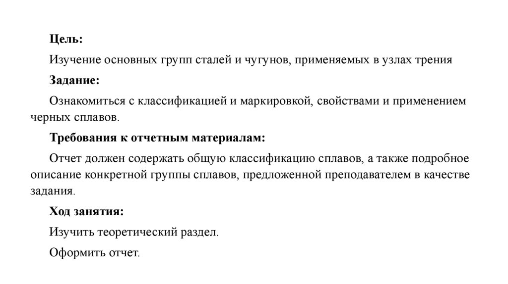 Цель:Изучение основных групп сталей и чугунов, применяемых в узлах трения