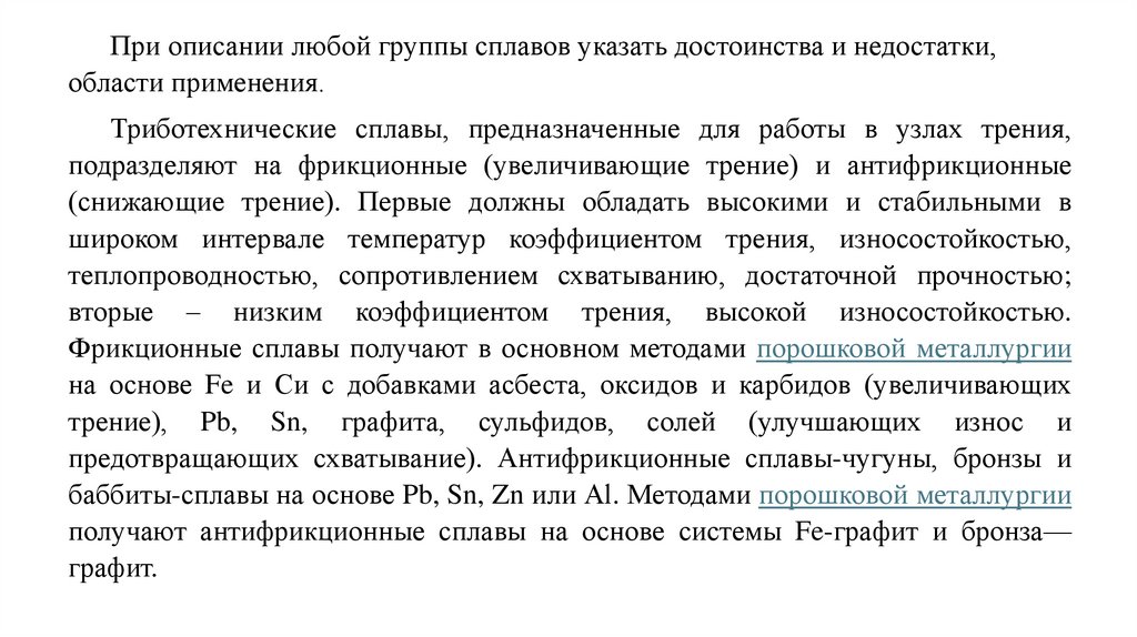 баббиты-сплавы на основе Pb, Sn, Zn или Аl. Методами порошковой металлургии