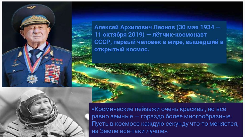 Алексей Архипович Леонов (30 мая 1934 —11 октября 2019) — лётчик-космонавт