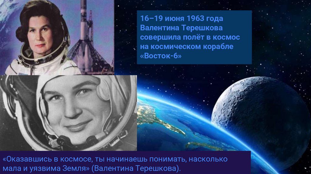 мала и уязвима Земля» (Валентина Терешкова).